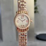 A masterpiece from Chopard, the Happy Diamonds collection redefines feminine elegance. Watch as diamonds glide freely across the dial, each movement a whisper of joy. Whether in rose gold, silver, or two-tone, adorned with diamonds or sleekly understated, it’s a fusion of Swiss watchmaking precision and high jewelry artistry. The signature quilted dial and Roman numerals pay homage to heritage, while the dancing diamonds celebrate the unbridled spirit of today’s woman. More than a watch, it’s a jewel that tells time—wear it, and let every moment shine with playful luxury.”