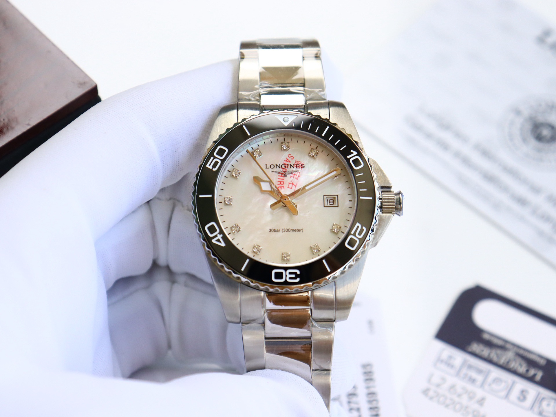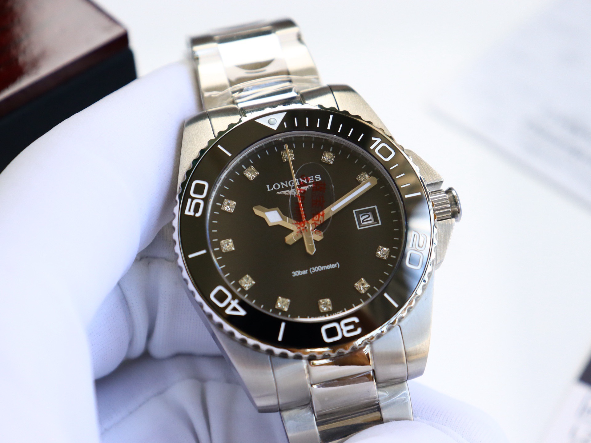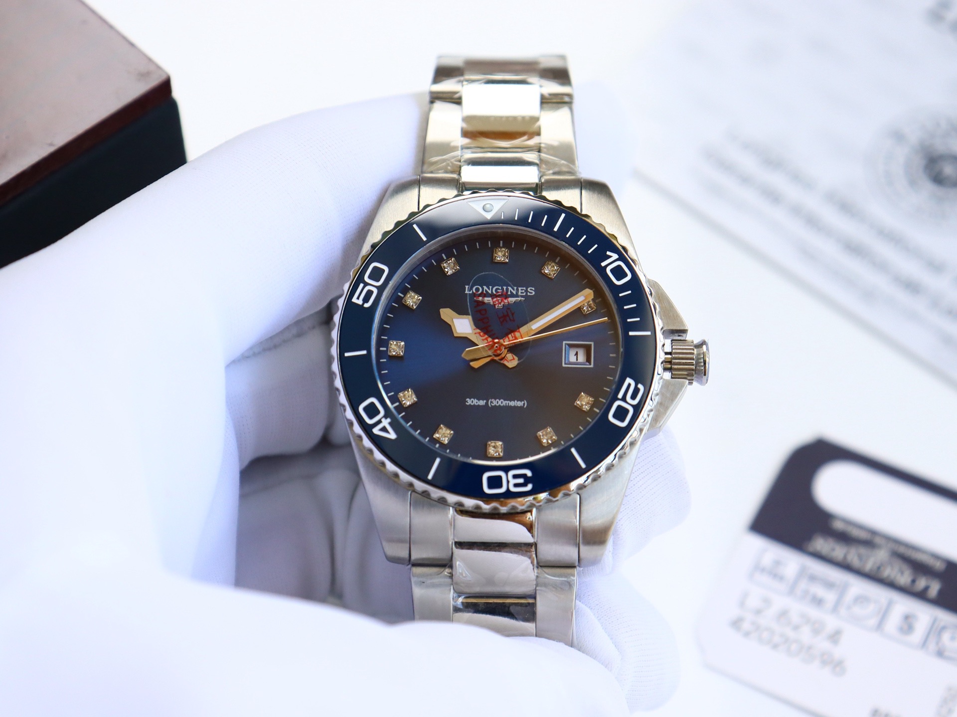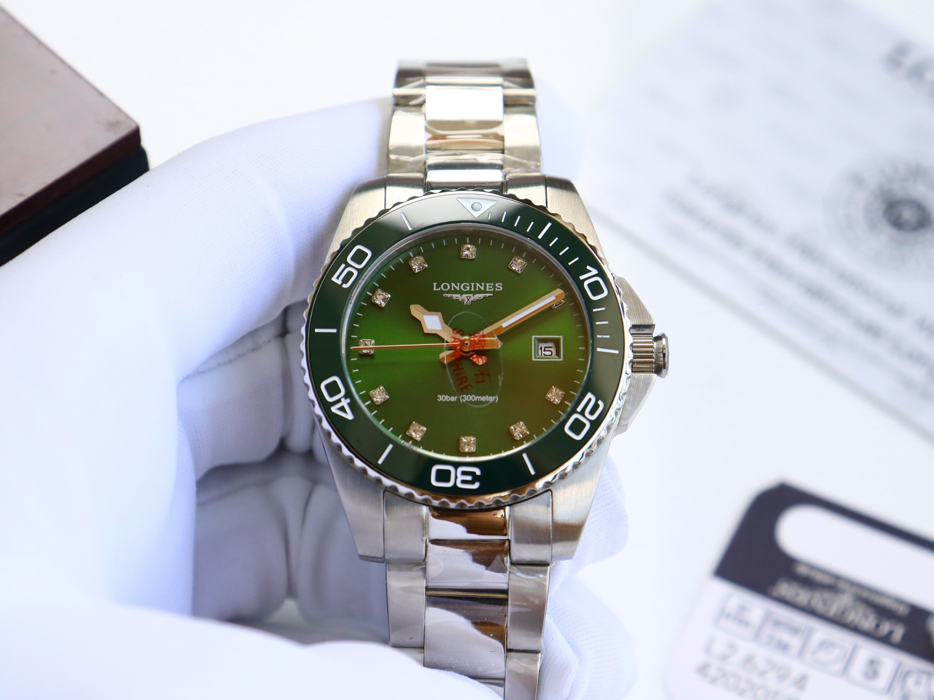 Crafted with a scratch-resistant ceramic bezel, 300m water resistance, and a robust automatic movement (powered by the iconic L888 caliber), it’s built to conquer depths, daily commutes, and everything in between. Choose from bold hues (matte green, gradient blue) or elegant mother-of-pearl with diamond accents—each design blends sporty grit with Longines’ legendary refinement.