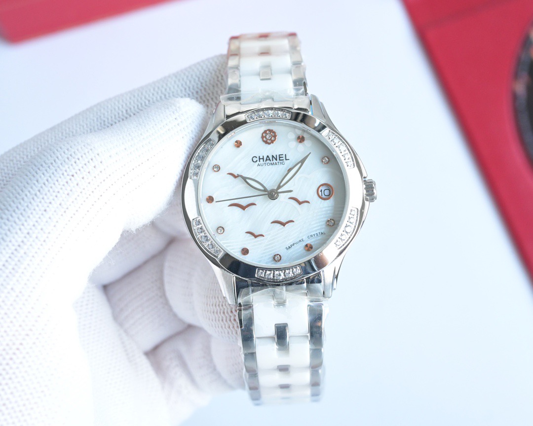 - Dual Strap Options: Choose between an imported calfskin strap for a soft, refined touch or a ceramic-and-stainless-steel inlay strap for a modern, durable aesthetic. Both designs complement the watch’s elegance while adapting to different styles.